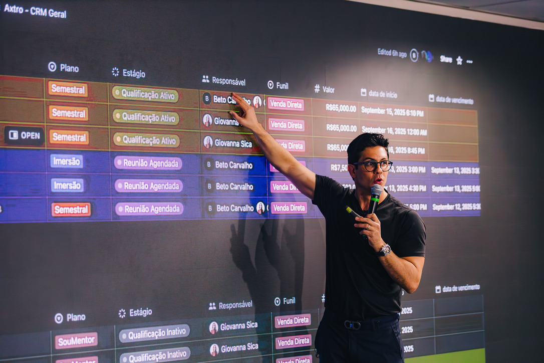 Seus treinamentos de vendas e palestras já impactaram mais de 500.000 pessoas globalmente, tendo compartilhado palco com grandes nomes do mundo dos negócios.
